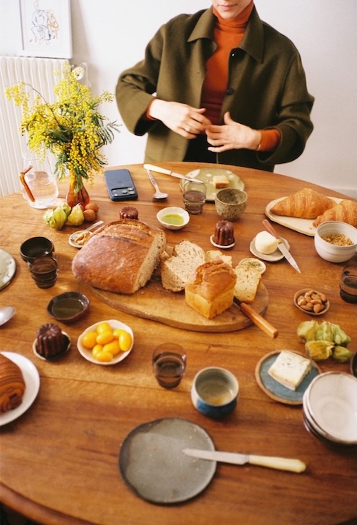 Dans son petit deux-pièces parisien avec vue carte postale sur le Sacré-Cœur, Farah Keram, journaliste et autrice culinaire ( Faire son pain et Cuisines d’Afrique du Nord ), donne réception deux fois par semaine, en moyenne. À sa petite table ronde en bois toujours fleurie, elle convie des connaissances et amies – et pas question de leur demander d’apporter quoi que ce soit : « J’aime m’occuper de tout, et j’accorde une importance particulière au tableau, avec de jolis bouquets de fleurs, une bougie, une corbeille de fruits. » Si elle reçoit un petit cadeau de ses invités, il trouve tout de suite sa place à table. « Ça ajoute une truc en plus, et ça casse mes codes – j’adore ! »