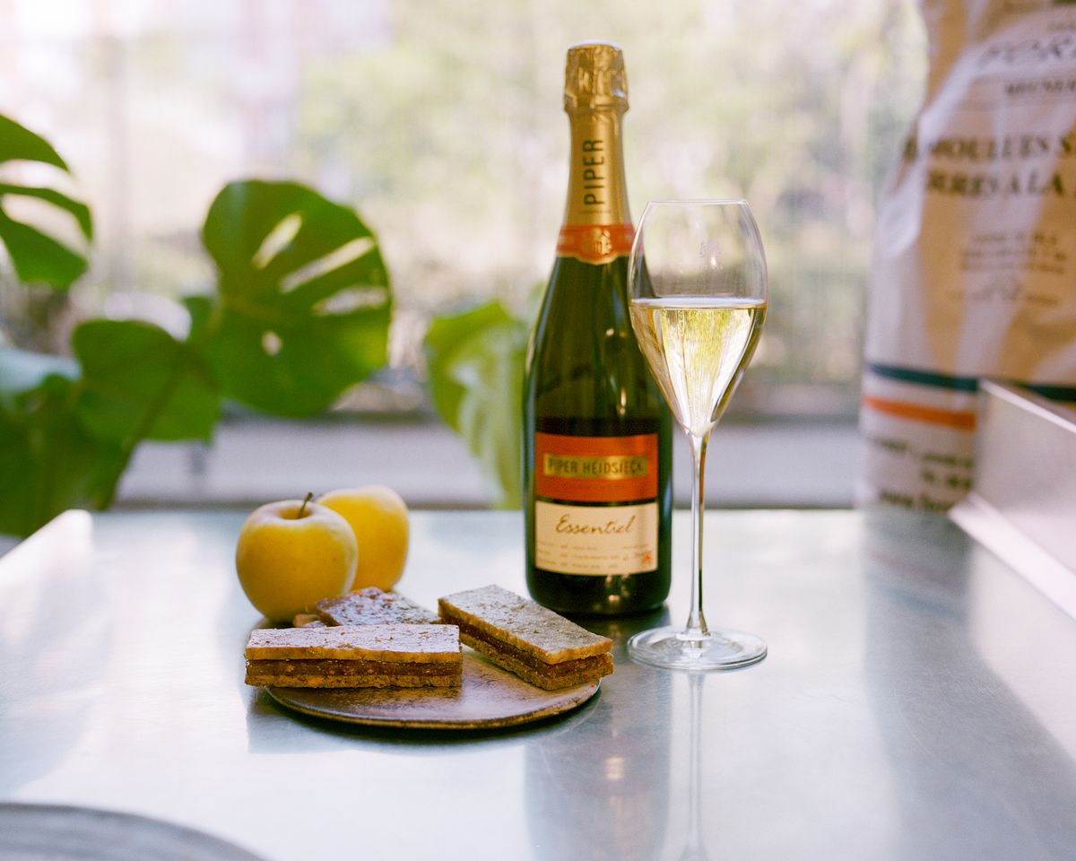 L’histoire de Max Carré vous a donné faim ? C’était sans compter sur sa recette de crackers coquins, répondant au doux nom de Brigands, à tapisser de terrine de foie gras et de pâte de pomme… Une grignoterie aussi rustique que régressive, à associer à la cuvée Piper-Heidsieck Essentiel – toute légère et fine en bouche, histoire de jouer sur les contrastes.